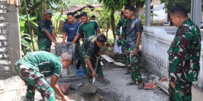 Seputarmadura.com, Sumenep, Jumat 27 Februari 2026– Peluh membasahi wajah Praka Triyanto saat mengayunkan cangkul, mengaduk campuran semen dan pasir di Dusun Karang,