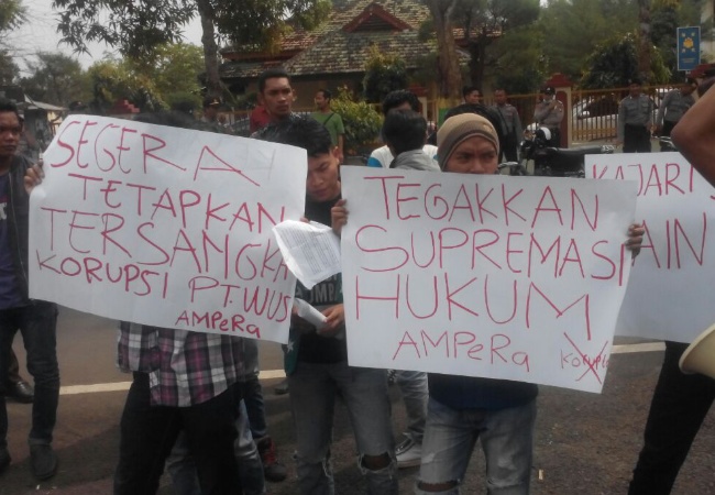 Disinggung mengenai desakan pendemo untuk segera menetapkan Direktur PT WUS sebagai tersangka, ia mengaku tidak mau terburu-buru karena masih dalam tahap penyidikan.