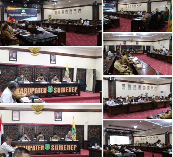 Rapat dipimpin Bupati Sumenep Dr. H. Achmad Fauzi Wongsojudo, S.H., M.H., serta dihadiri Kapolres Sumenep AKBP Rivanda, S.I.K., jajaran Organisasi Perangkat Daerah (OPD), dan Aparatur Sipil Negara (ASN) terkait.