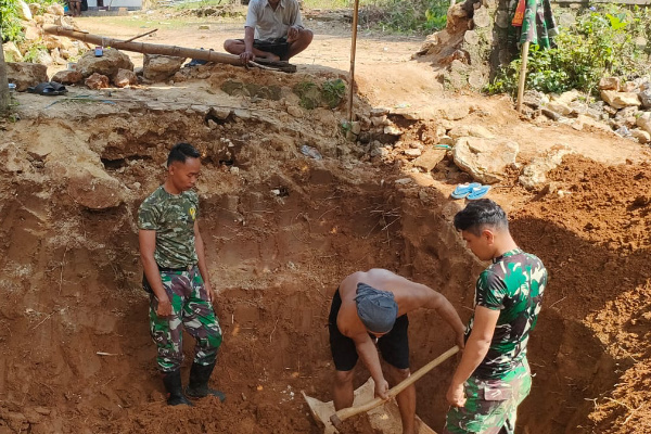 Pada Minggu, 12 April 2026, anggota Koramil 0827/10 Ambunten bersama warga fokus menggarap penggalian pondasi sebagai tahap krusial pembangunan.