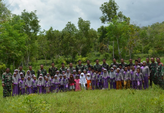 Seputarmadura.com, Sumenep, Kamis 21 Maret 2019- Gembiranya siswa Al-Hikmah Desa Larangan Kerta, Kecamatan Batuputih bermain dan bercanda dengan anggota Satgas TMMD 104 Kodim 0827 Sumenep, Madura, Jawa Timur, Kamis (21/3/2019).