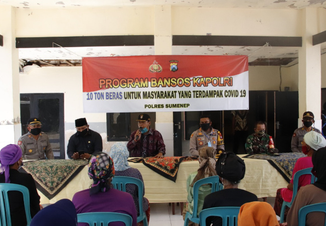 “Hari ini kami bersama Forpimka menelusuri warga yang terdampak covid-19., untuk memberikan bansos Polri di Pulau Giliyang, Dungkek,” ujarnya.