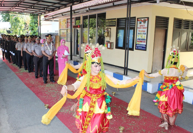 Banyak prosesi yang digelar saat penyambutan Kapolres Sumenep yang baru, diantaranya Pedang Pora dan Tari Muang Sangkal, yang dimulai dari pintu sisi timur Mapolres Sumenep, Kamis, 28 November 2019.