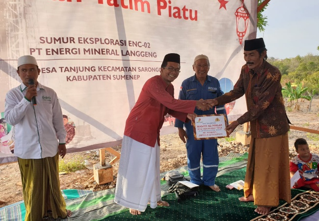 Seputarmadura.com, Sumenep, Senin 15 Oktober 2018- Untuk mendukung kelancaran kegiatan pemboran Sumur Eksplorasi ENC-02 di Desa Tanjung Kecamatan Saronggi Kabupaten Sumenep, Madura, Jawa Timur, Kontraktor Kontrak Kerja Sama (KKKS) PT Energi Mineral Langgeng (EML) melanjutkan agenda doa bersama yatim piatu di wilayah operasinya. Saat ini, perusahaan migas nasional itu menyapa yatim piatu dari desa-desa sekitar wilayah operasi secara bergiliran.