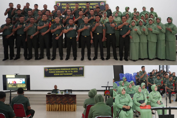 Seputarmadura.com, Sumenep, Rabu 19 Nopember 2025– Suasana Aula Makodim 0827/Sumenep, Madura, terasa hidup pada pagi hari, Rabu, 19 Nopember 2025, saat jajaran Kodim mengikuti Penyuluhan Bintal Fungsi Komando dari Bintal Korem 084/Bhaskara Jaya.