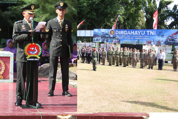 Seputarmadura.com, Sumenep, Minggu 05 Oktober 2025– Kodim 0827/Sumenep, Madura, Jawa Timur, menggelar upacara peringatan Hari Ulang Tahun (HUT) ke-80 Tentara Nasional Indonesia (TNI) di Lapangan Makodim 0827/Sumenep. Minggu, 5 Oktober 2025.