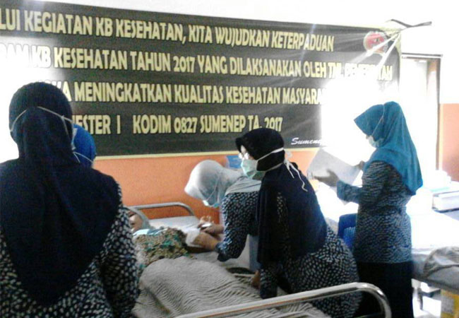 Kegiatan KB Kesehatan tersebut diselenggarakan Kodim (Komando Distrik Militer) 0827/Sumenep dan bekerjasama dengan dinas Badan Koordinasi Keluarga Berencana Nasional (BKKBN) Kabupaten Sumenep. Kegiatan ini dengan tema “ Melalui Kegiatan KB Kesehatan, Kita wujudkan Keterpaduan Pelaksanaan Program KB Kesehatan Tahun 2017, Yang dilaksanakan oleh TNI, Pemerintah Dan BKKBN dalam rangka meningkatkan kualitas Kesehatan Masyarakat di Daerah ”.