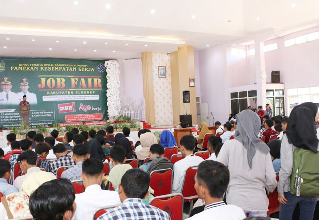 Seputarmadura.com, Sumenep, Rabu 10 Juli 2019- Pemerintah Kabupaten (Pemkab) Sumenep, Madura, Jawa Timur, tak henti-hentinya meluncurkan program guna menekan angka pengangguran di bumi sumekar ini. Salah satunya, dengan menggelar bursa kerja atau Job Fair yang melibatkan 20 perusahaan, Rabu (10/7/2019).