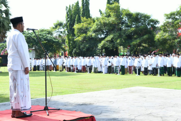 Sambil berpakaian muslim dilengkapi peci dan sarung, Bupati Sumenep, Achmad Fauzi Wongsojudo, pimpin apel gabungan di halaman Kantor Bupati setempat, yang diikuti seluruh Aparatur Sipil Negara (ASN) di lingkungan Pemkab Sumenep. Rabu, 22 Oktober 2025.