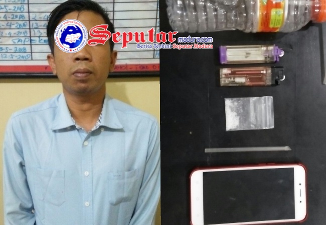 Seputarmadura.com, Sumenep, Senin 30 April 2018- Riza Fahlefi Wardeni (37), warga Desa Babbalan, Kecamatan Batuan, Kabupaten Sumenep, Madura, Jawa Timur, diamankan petugas saat kedapatan membawa narkotika jenis sabu-sabu, diletakkan didalam silikon hp miliknya, Senin (30/4/2018).