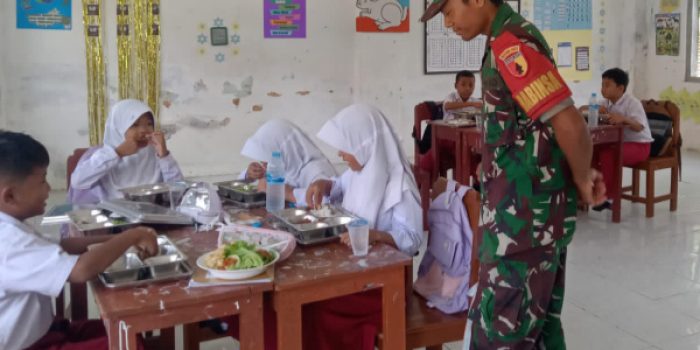 Program Makan Bergizi Gratis Sasar Ratusan Siswa di Dasuk, Babinsa Turun Langsung Kawal Distribusi
